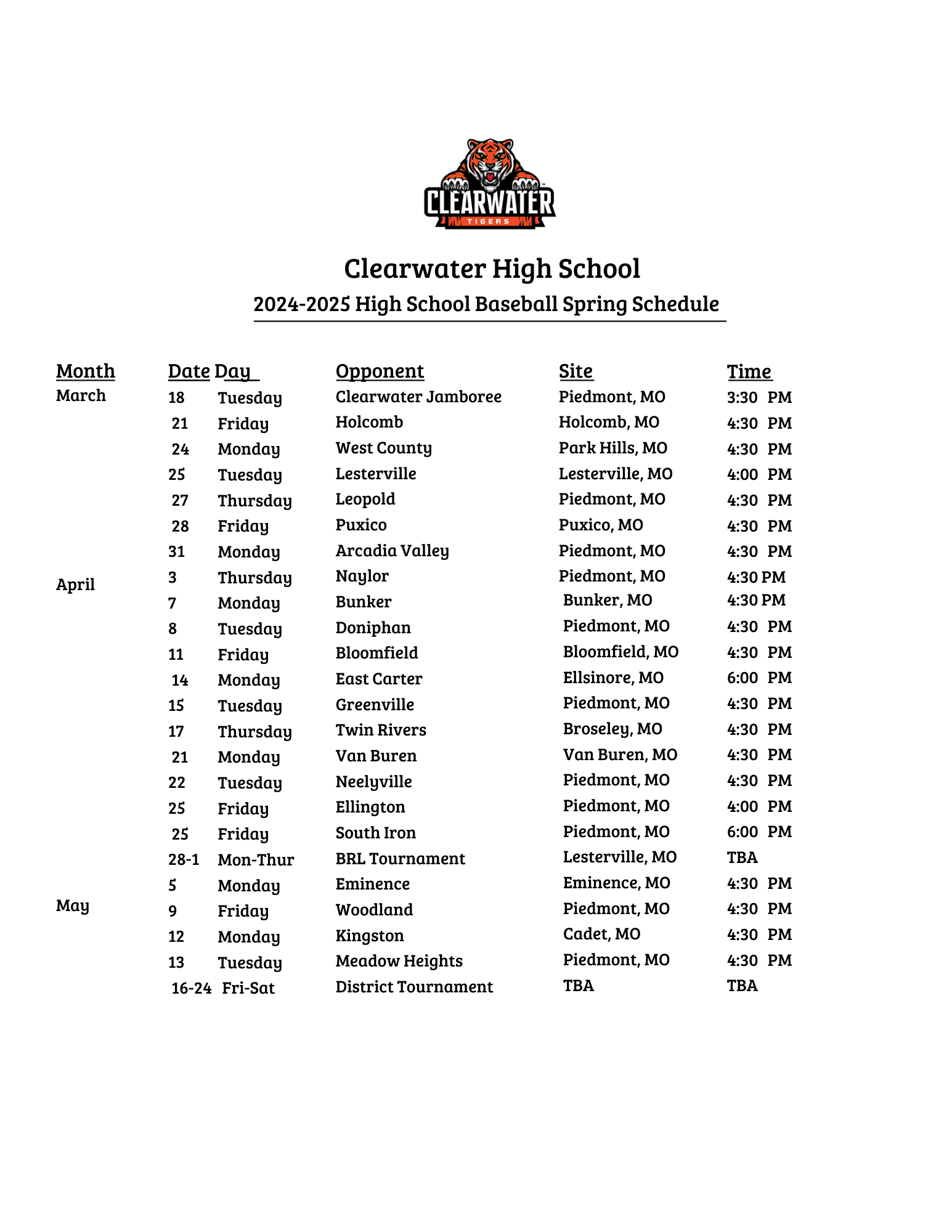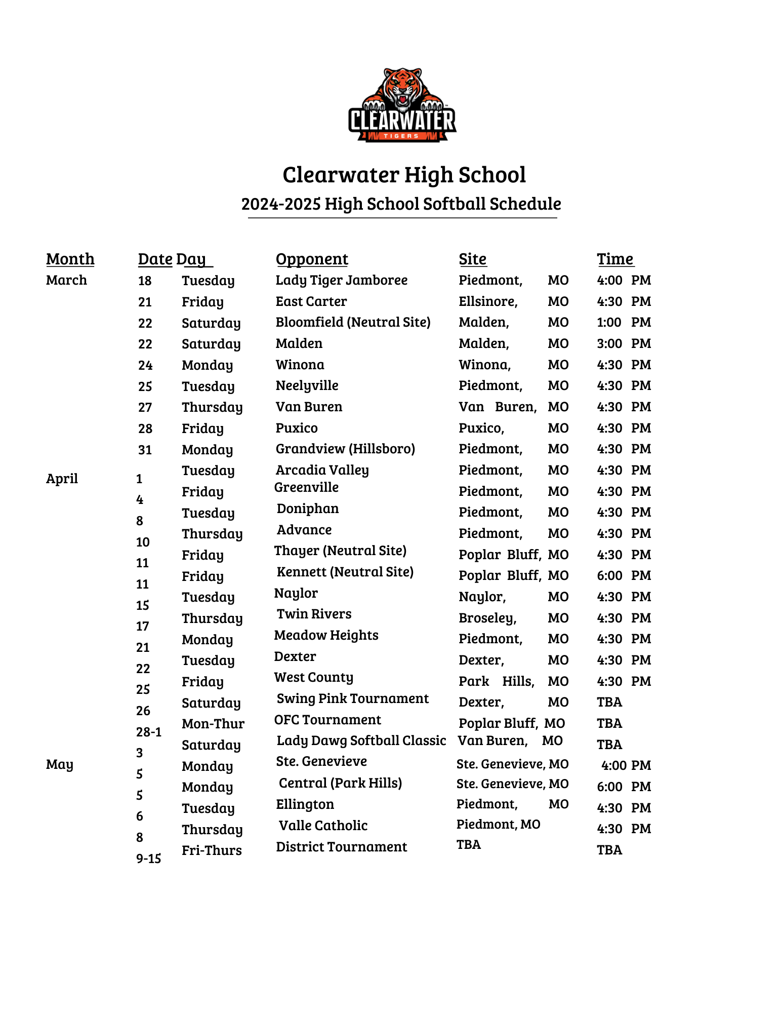 Spring sports practices start this week! Here are the Baseball and Softball Schedules.