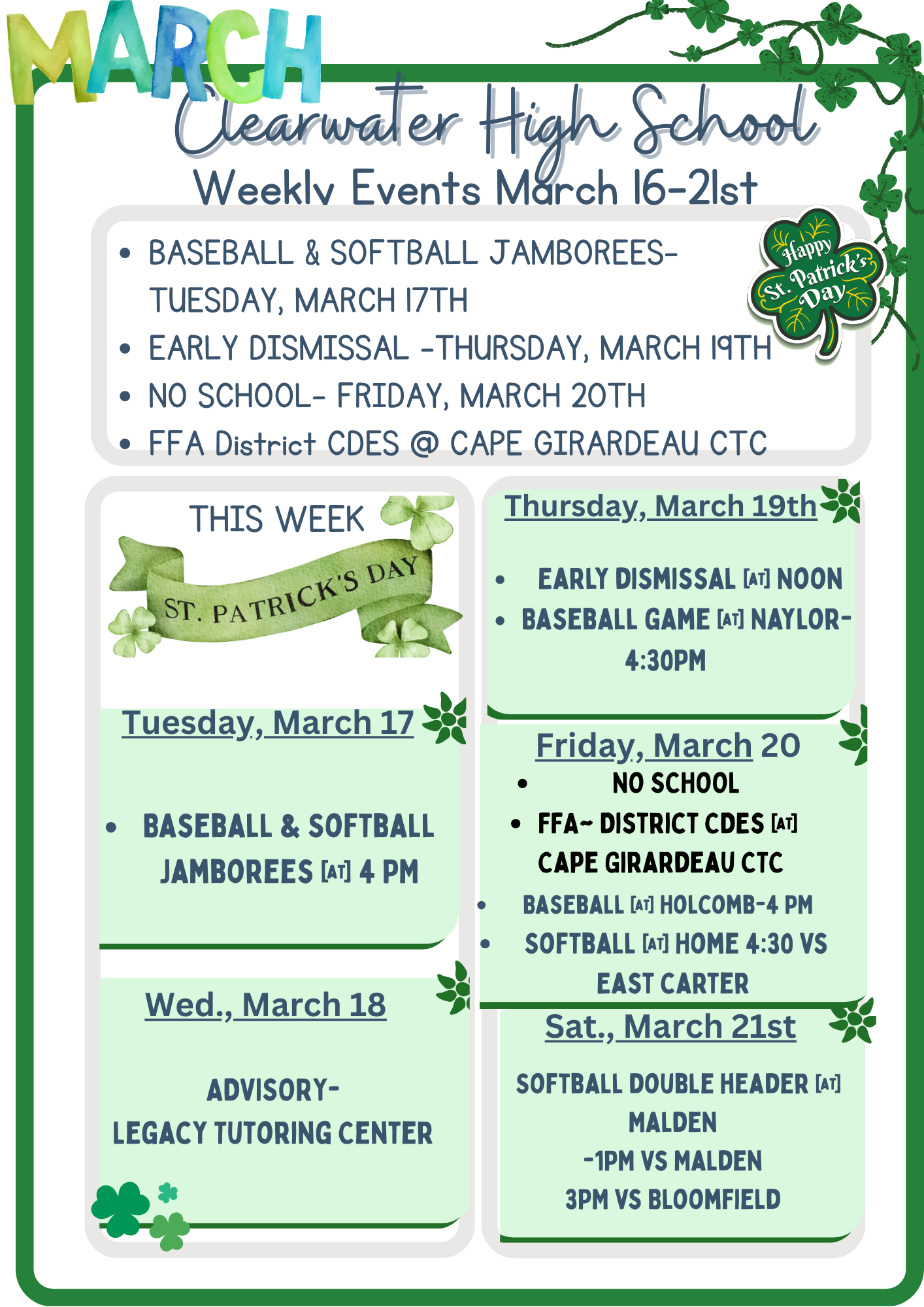 CHS Weekly Events March 16th-21st