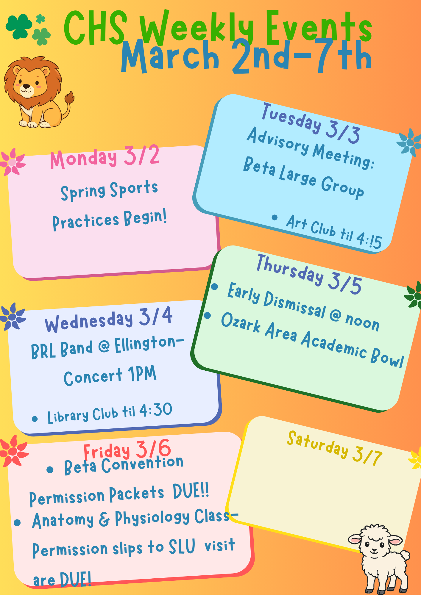 Weekly Events -March 2nd-7th